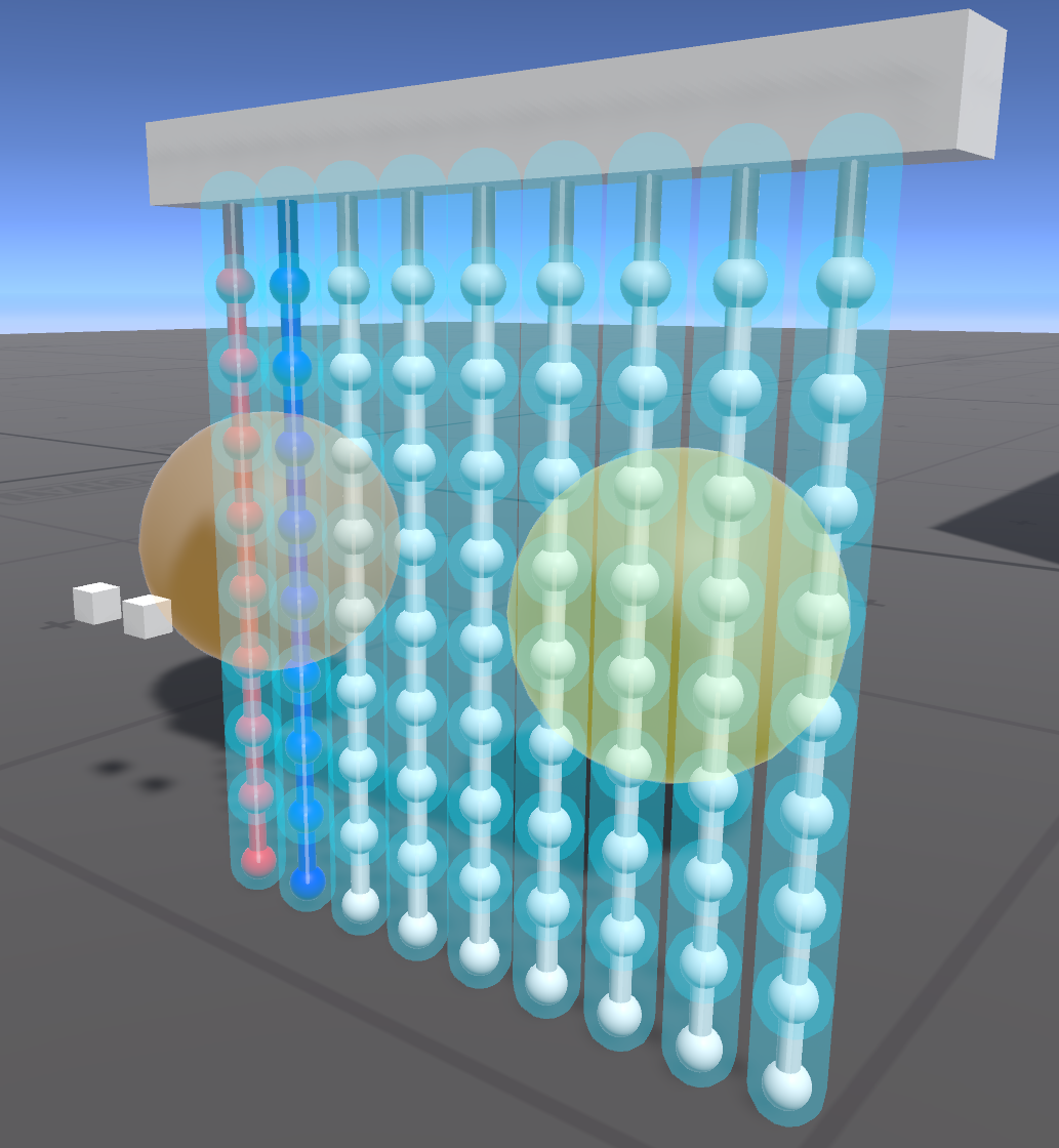 Debug view 7 highlights all nearby PhysBones and Contacts in the world. This can be useful for debugging these components when they aren't behaving in the way you're expecting them to.